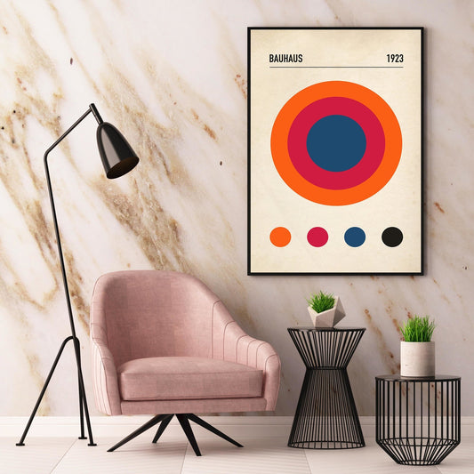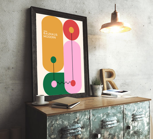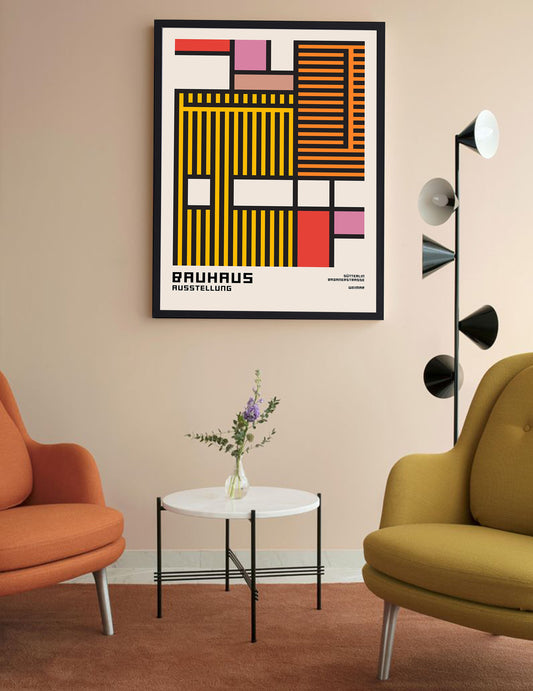 The Bauhaus collection is inspired by the groundbreaking art and design movement that originated in Germany in 1919. It emphasis on clean lines, geometric shapes, and a balanced use of color, capturing the essence of Bauhaus's minimalist aesthetic. Characterized by bold primary colors and geometric forms, the visuals showcase the distinctive Bauhaus approach to creating objects and spaces that are both beautiful and utilitarian. The careful balance of form and space creates a sense of structure and order, yet remains flexible enough to allow the viewer to engage with the work in a personal, intuitive way.