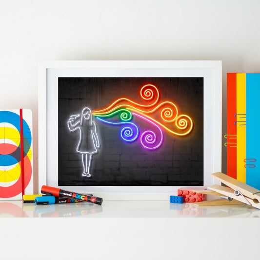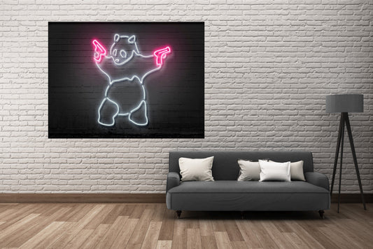 Octavian Mielu crafts digital neon artwork featuring celebrities, symbols, and everyday objects. Based in Bucharest, Romania, he draws inspiration from urban pop art and topographic design. His pieces combine dark-toned subjects with vibrant, glowing outlines, bringing a bold, dynamic energy to any space.