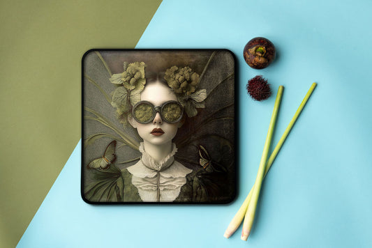Soon AvailableMetal Tray - Alisa - Girl in Moss Glasses - 15 x 15 cm