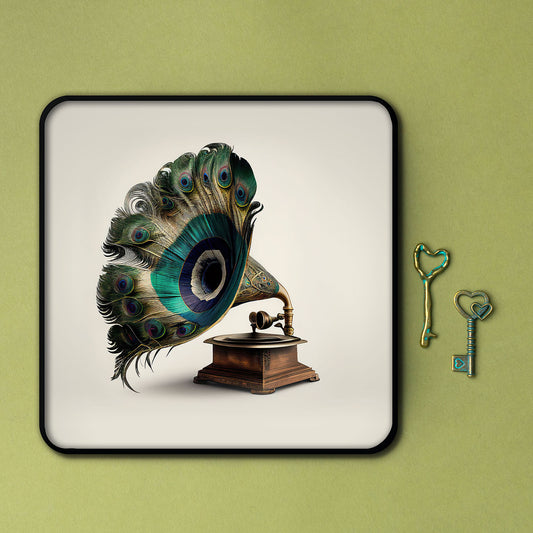 Soon AvailableMetal Tray - Artem - Peacock Gramaphone - 15 x 15 cm