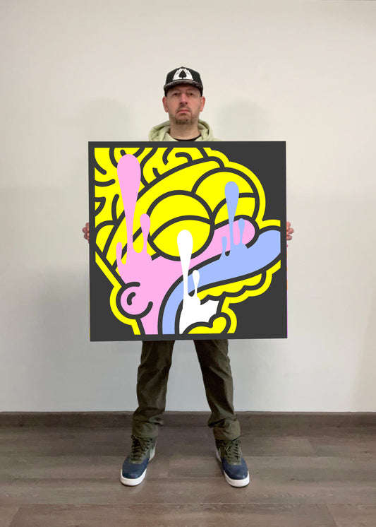 Brutal Kortex, artiste pop art français, réinvente les icônes de la culture populaire en y insufflant une tension contemporaine, où l’esthétique graphique rencontre une profonde exploration intérieure. À travers des figures emblématiques comme les Simpson, Mario, Mickey ou Dragon Ball Z, il utilise ces icônes pour révéler les fractures mentales et sociales de notre époque. Ses oeuvres, mêlant peinture et art digital, livrent une vision intense et sensible des déséquilibres psychiques, explorant sans filtre les fragilités humaine.