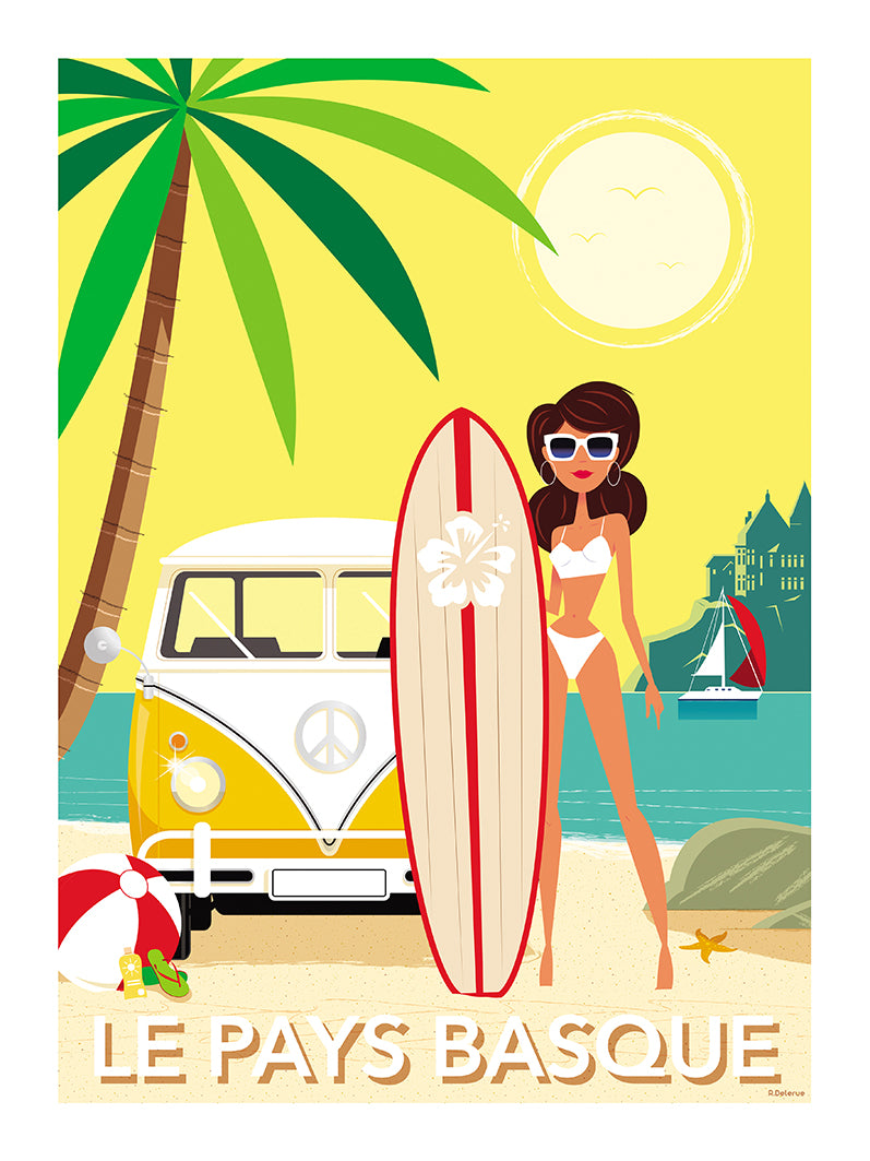 Raphaël Delerue est un illustrateur basé en Normandie. Formé aux écoles Saint-Luc de Tournai et ERG de Bruxelles, il travaille pour la publicité, l’édition, la presse et le web. Il est reconnu pour ses affiches touristiques au style rétro inspiré des années 50-60. Son univers mêle lignes claires, couleurs vives et paysages régionaux français. Il collabore aussi avec des éditeurs comme Hachette ou Ouest-France.