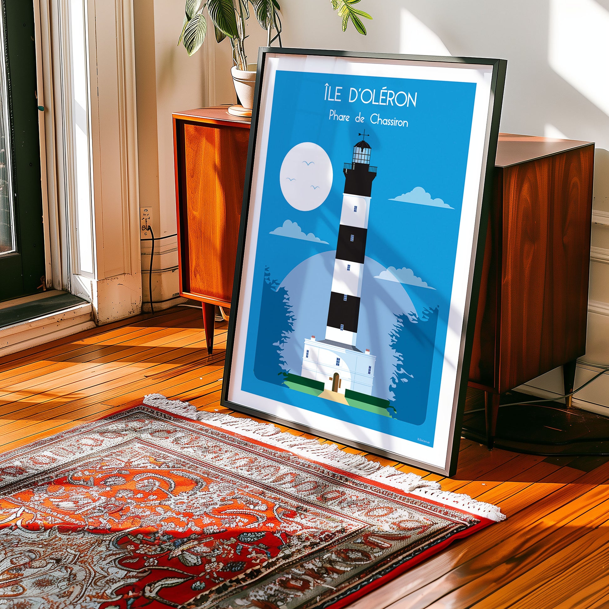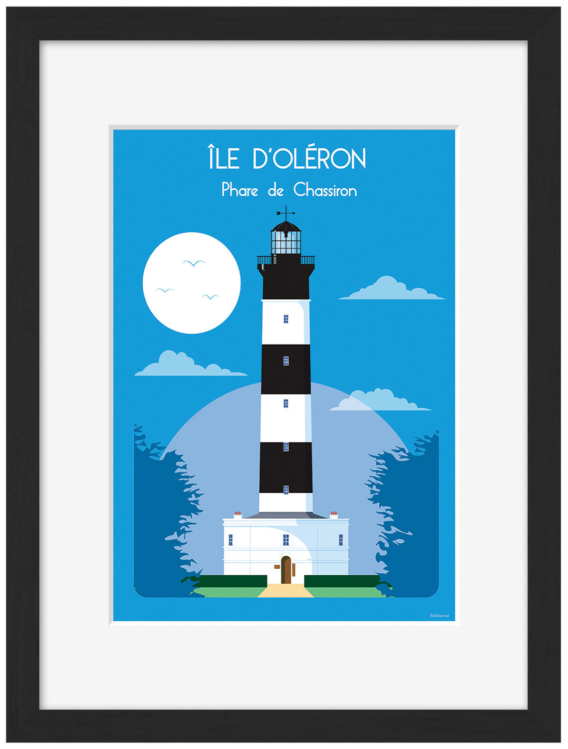 Raphaël Delerue est un illustrateur basé en Normandie. Formé aux écoles Saint-Luc de Tournai et ERG de Bruxelles, il travaille pour la publicité, l’édition, la presse et le web. Il est reconnu pour ses affiches touristiques au style rétro inspiré des années 50-60. Son univers mêle lignes claires, couleurs vives et paysages régionaux français. Il collabore aussi avec des éditeurs comme Hachette ou Ouest-France.