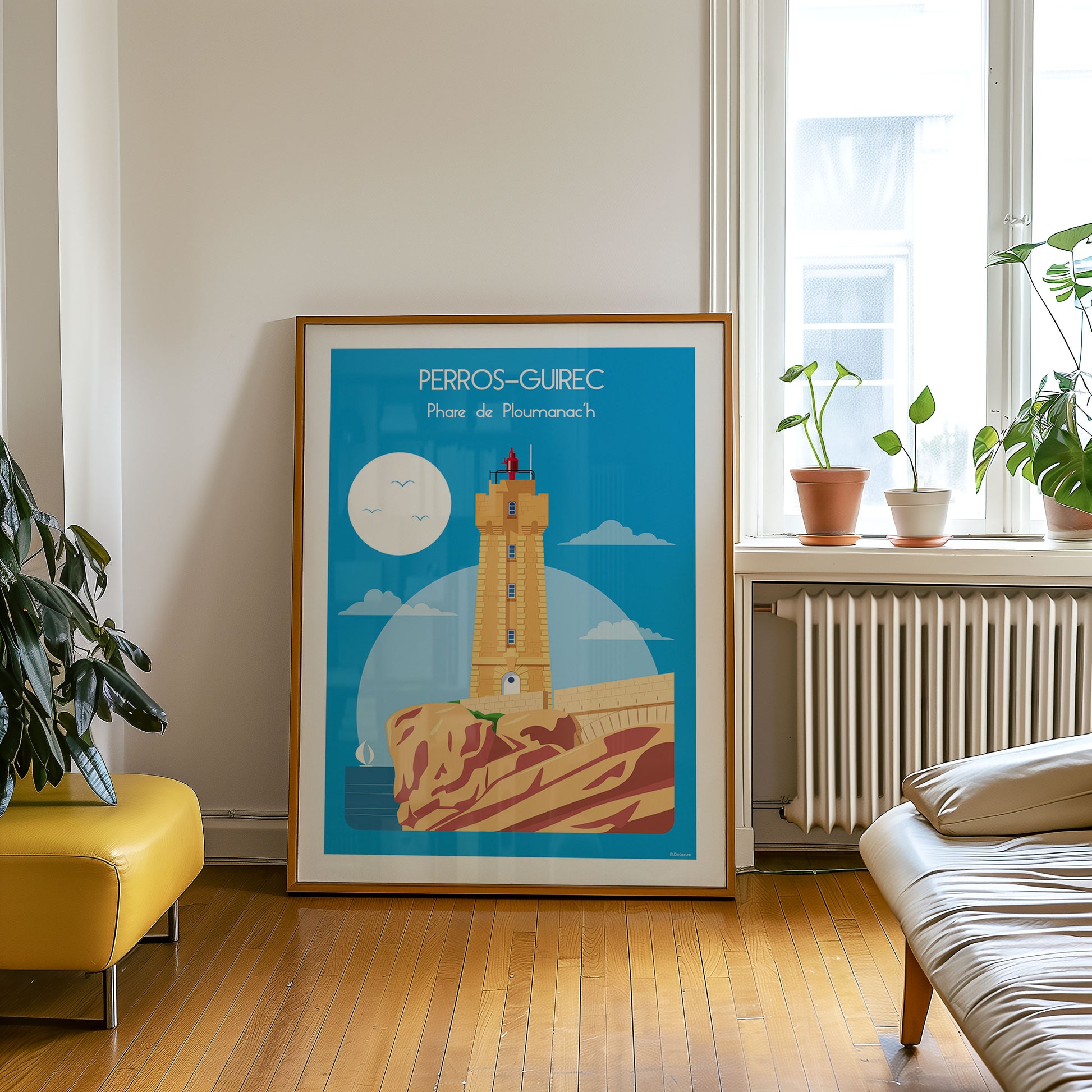 Raphaël Delerue est un illustrateur basé en Normandie. Formé aux écoles Saint-Luc de Tournai et ERG de Bruxelles, il travaille pour la publicité, l’édition, la presse et le web. Il est reconnu pour ses affiches touristiques au style rétro inspiré des années 50-60. Son univers mêle lignes claires, couleurs vives et paysages régionaux français. Il collabore aussi avec des éditeurs comme Hachette ou Ouest-France.