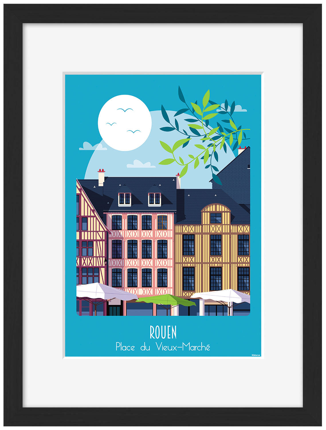 AFFICHE ENCADRÉE - Tirage papier 250 gr couché demi mat avec cadre noir en bois massif, vitre en verre acrylique et passe partout, format du cadre 40 x 50 cm et 50 x 70 cm (détails).