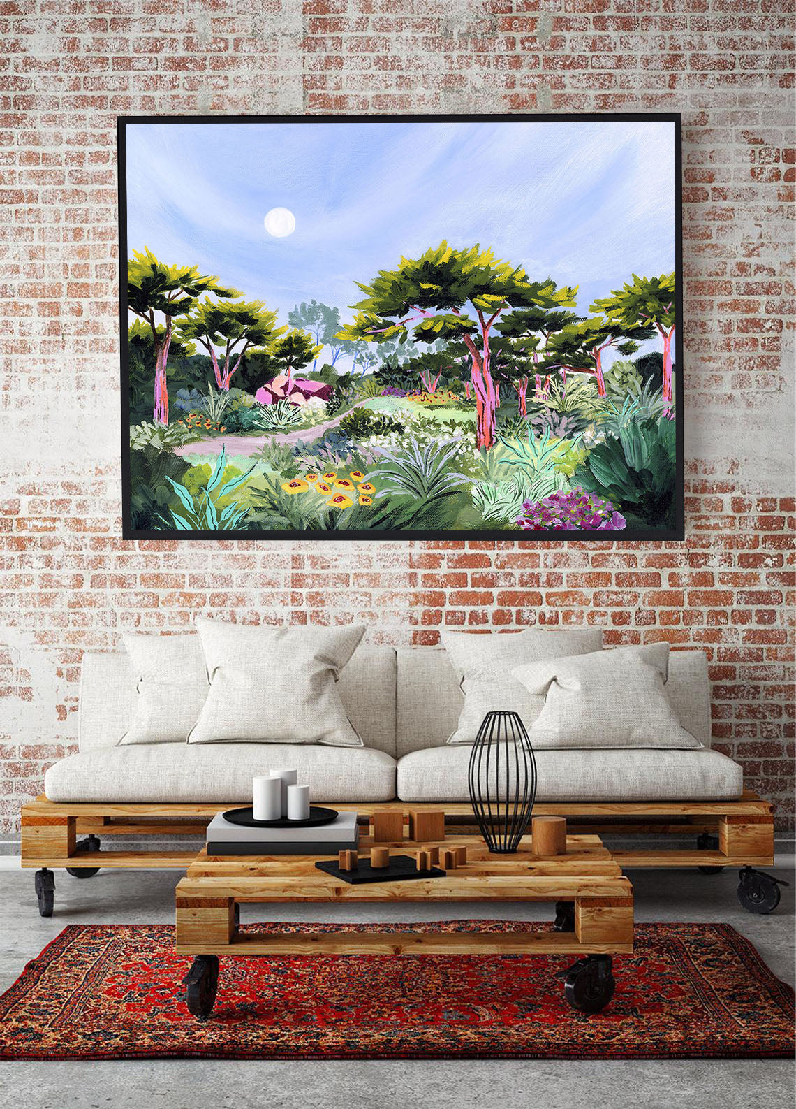 AFFICHE ENCADRÉE - Tirage papier 250 gr couché demi mat avec cadre noir en bois massif, vitre en verre acrylique et passe partout, format du cadre 40 x 50 cm et 50 x 70 cm (détails).