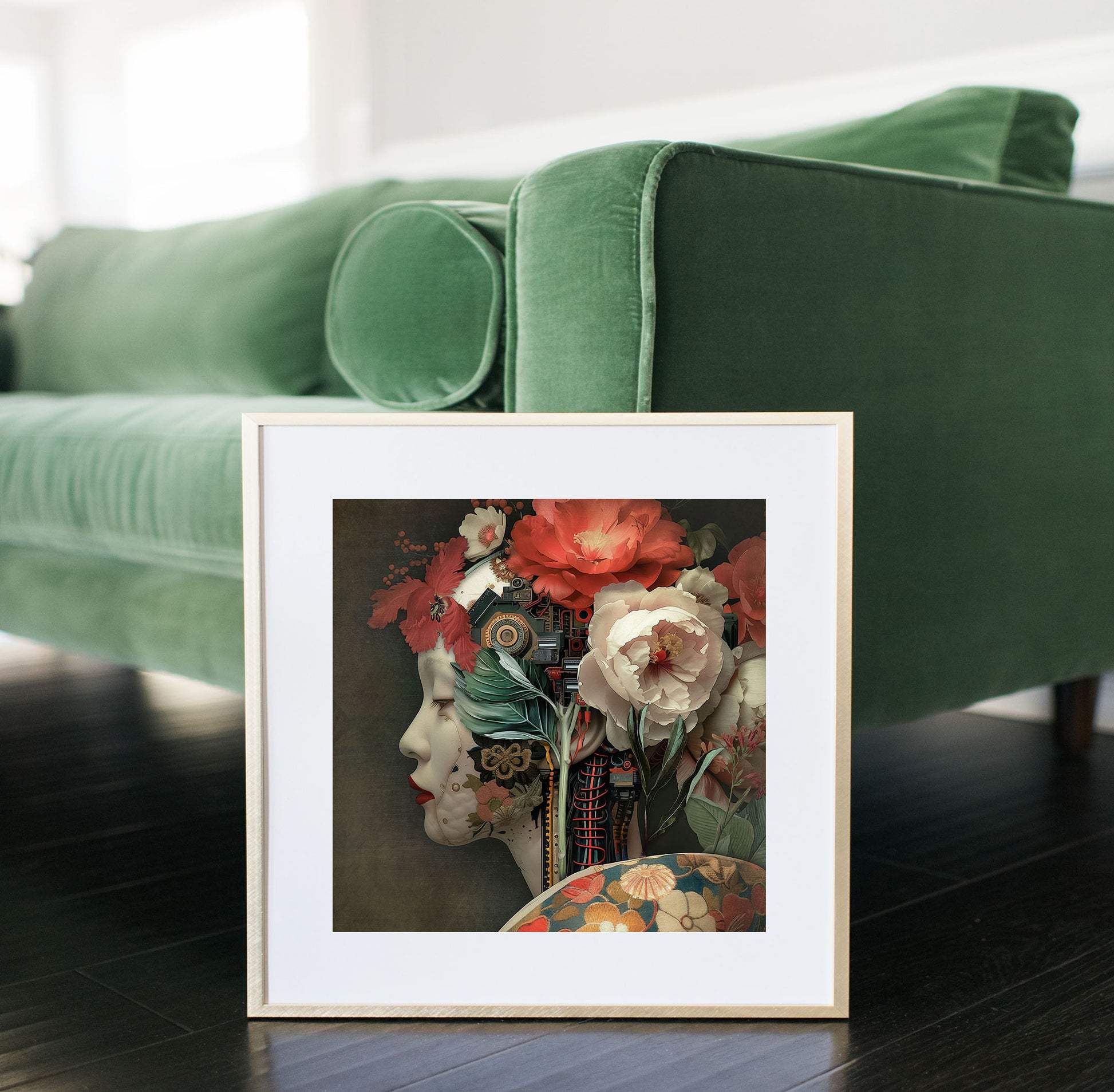 Printed on canvas with 20 mm wooden frame and framed with 37 mm depth black solid wood Box Frame, satin finish (details).