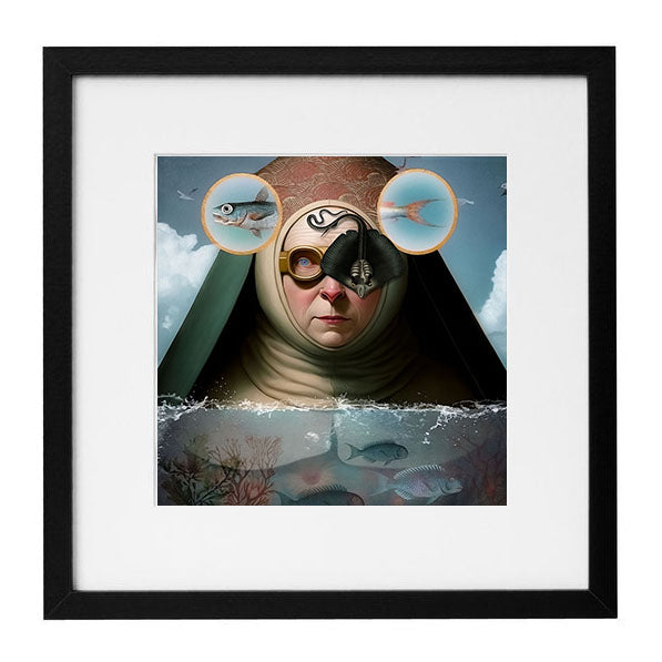 Fine Art print 250g with wooden black frame, acrylic glass and passe partout, size of the frame 40 x 50 cm and 50 x 70 cm (details).
