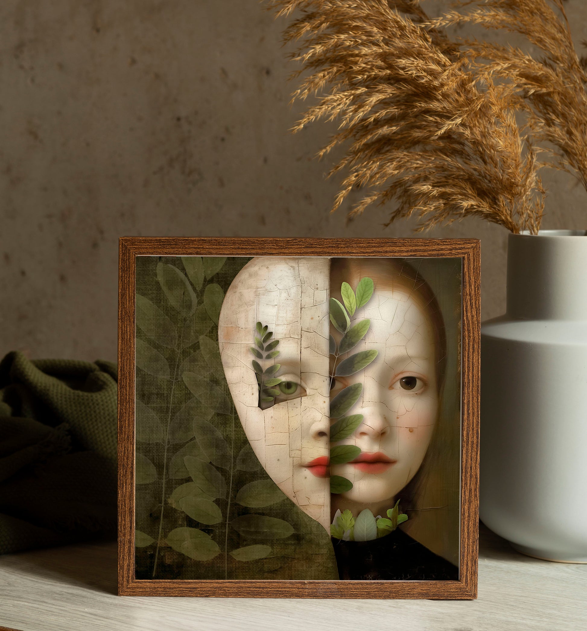 Printed on canvas with 20 mm wooden frame and framed with 37 mm depth black solid wood Box Frame, satin finish (details).