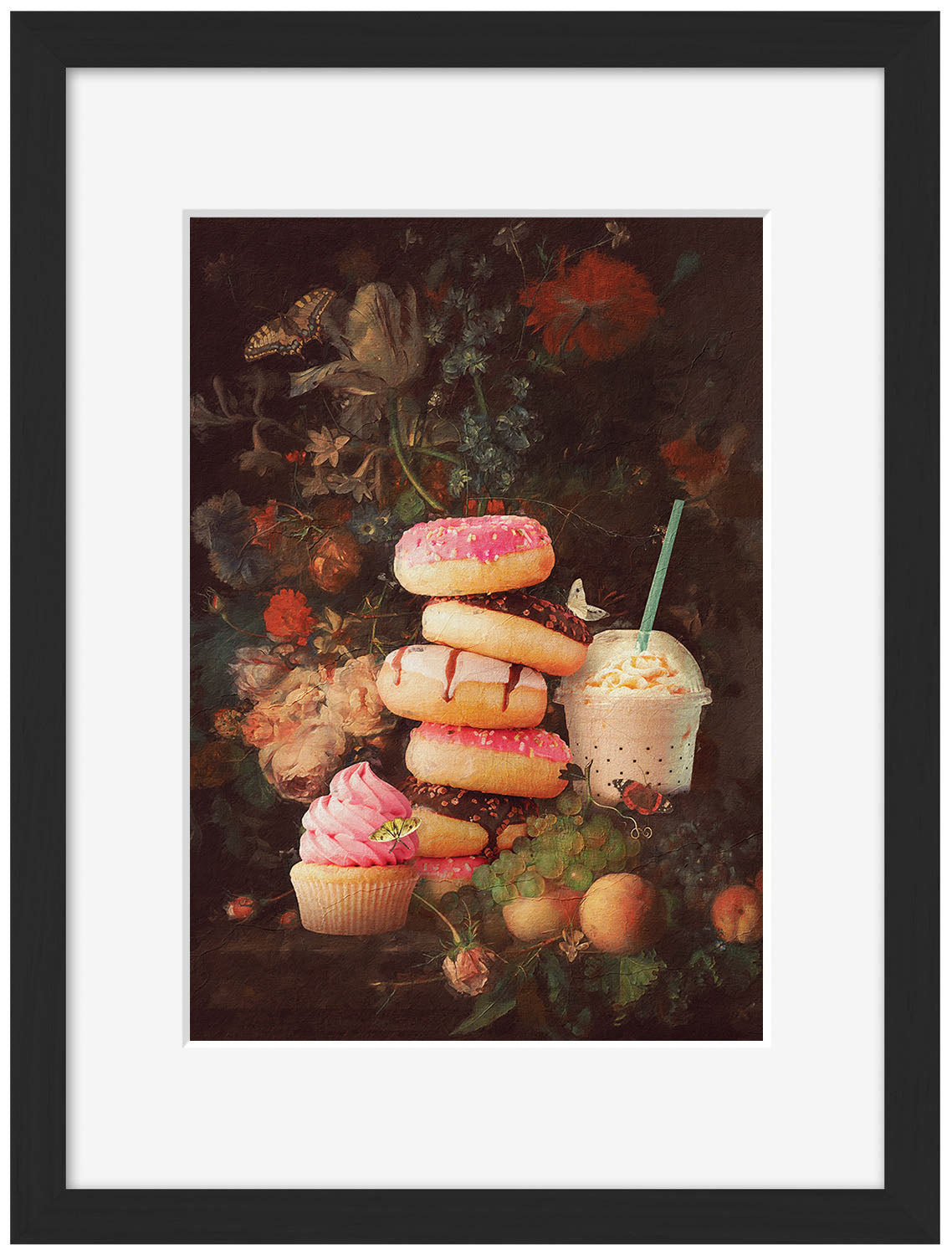 Fine Art print 250g with wooden black frame, acrylic glass and passe partout, size of the frame 40 x 50 cm and 50 x 70 cm (details).
