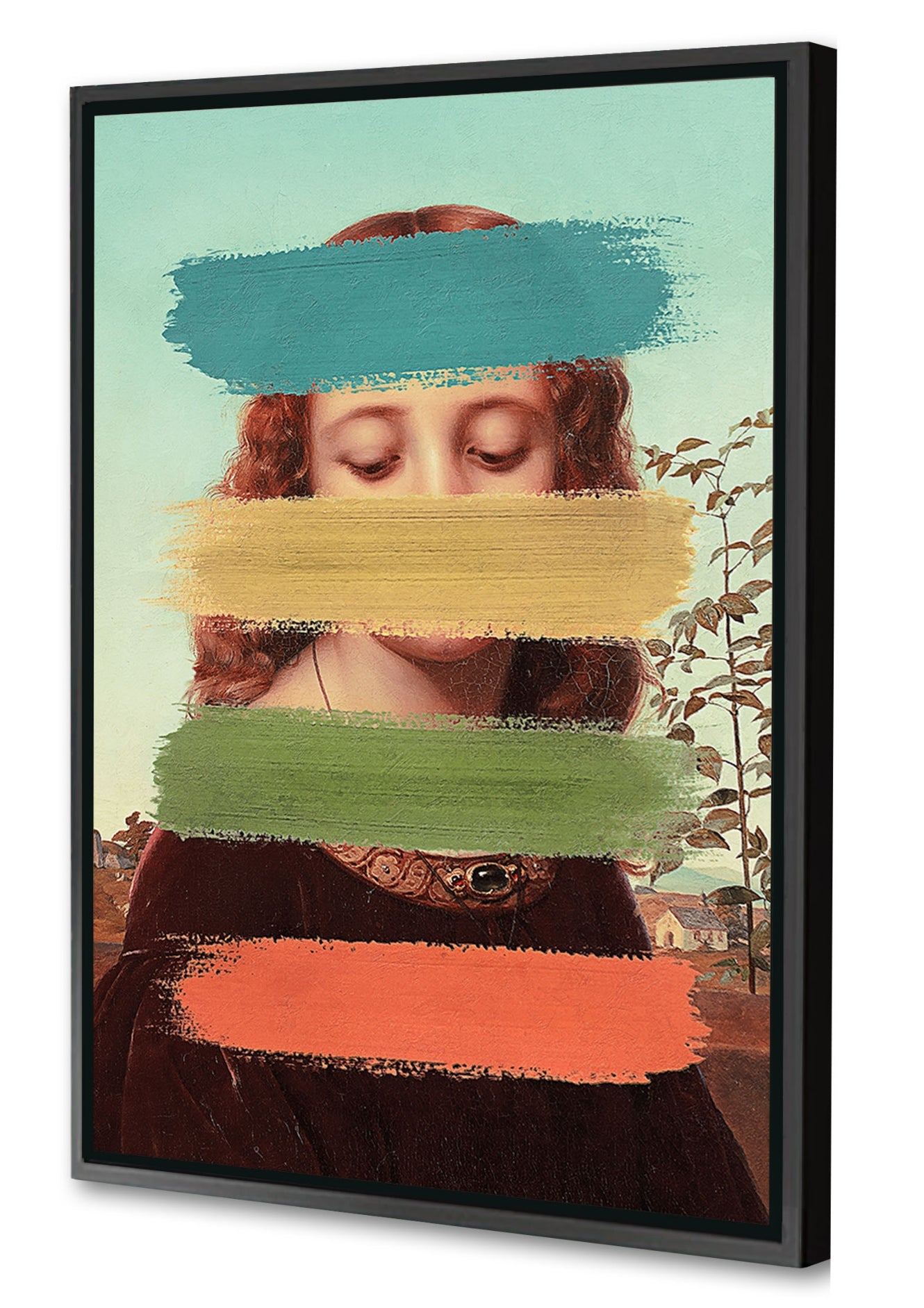Printed on canvas with 20 mm wooden frame and framed with 37 mm depth black solid wood Box Frame, satin finish (details).