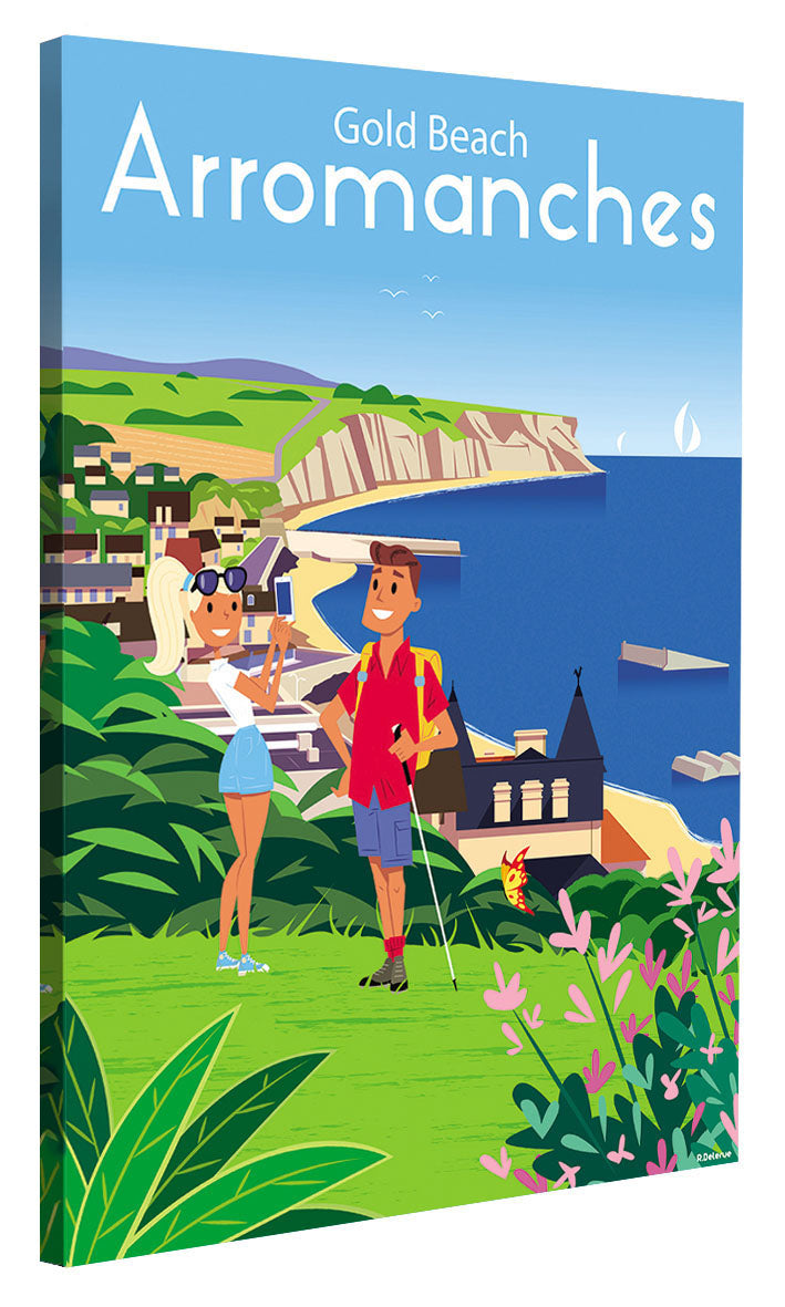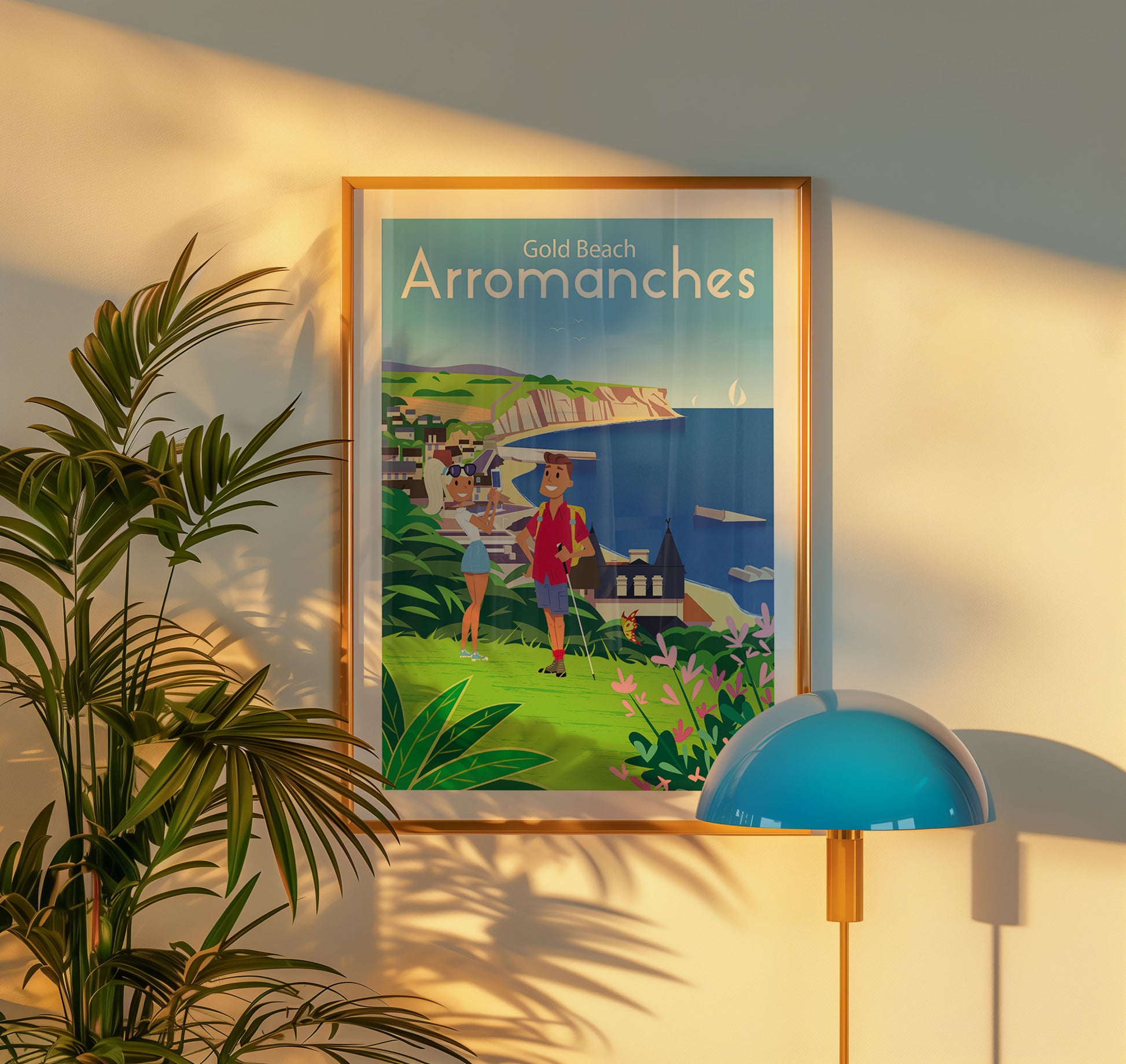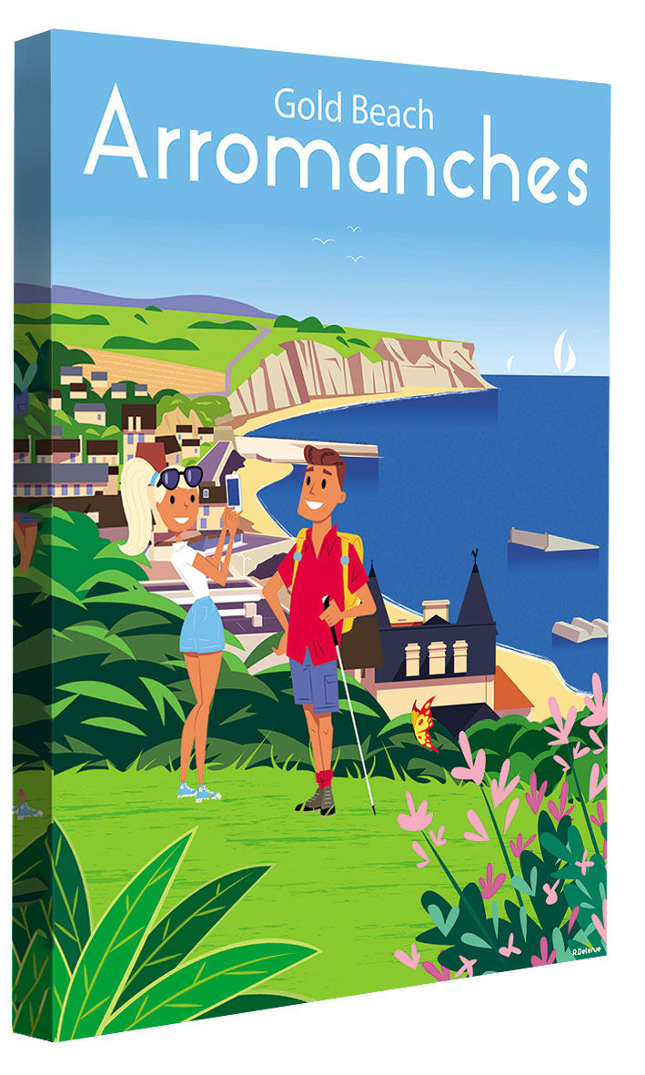 Raphaël Delerue is an illustrator based in Normandy. Trained at the Saint-Luc School in Tournai and ERG in Brussels, he works in advertising, publishing, press, and web. He is known for his retro-style travel posters inspired by the 1950s and 60s. His work combines clean lines, vibrant colors, and regional French landscapes. He also collaborates with publishers such as Hachette and Ouest-France.
