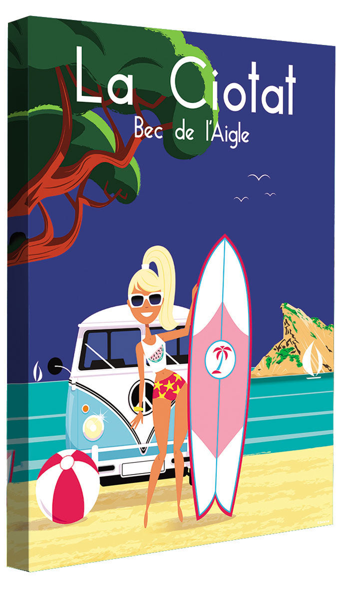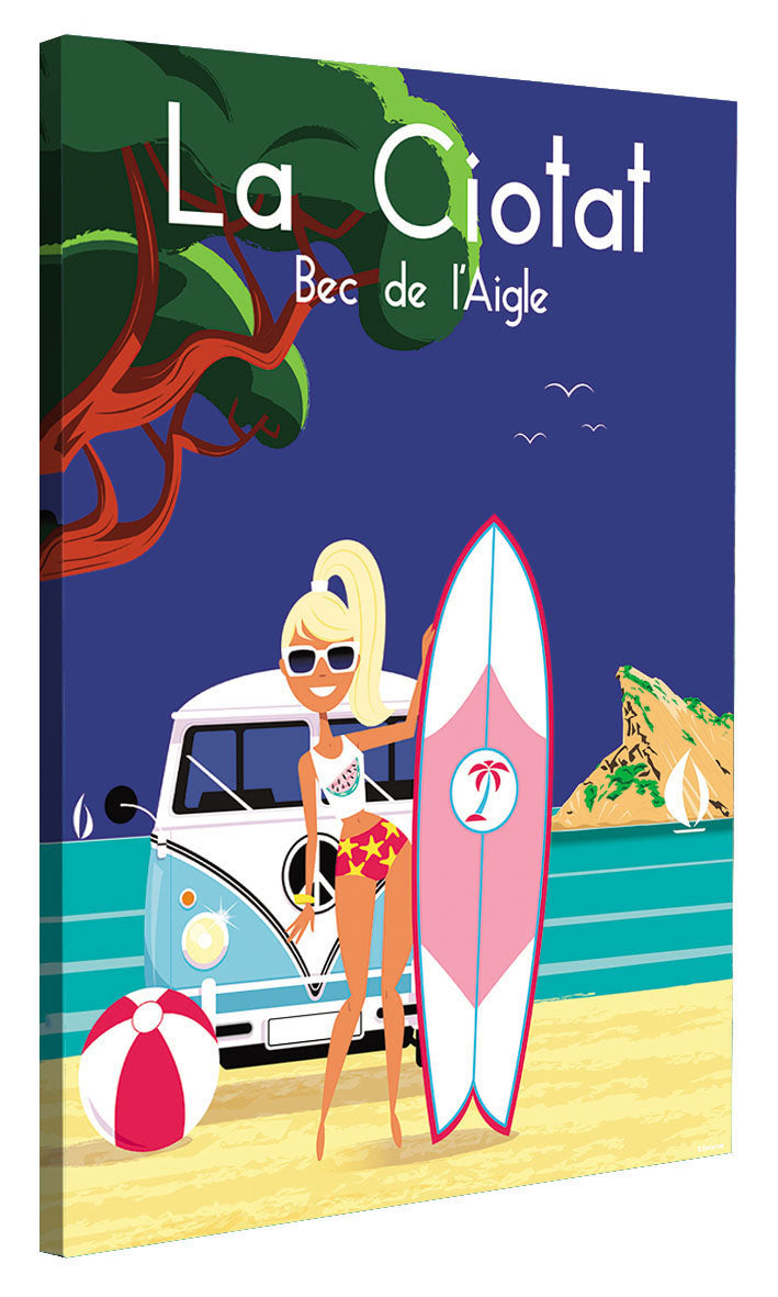 Raphaël Delerue is an illustrator based in Normandy. Trained at the Saint-Luc School in Tournai and ERG in Brussels, he works in advertising, publishing, press, and web. He is known for his retro-style travel posters inspired by the 1950s and 60s. His work combines clean lines, vibrant colors, and regional French landscapes. He also collaborates with publishers such as Hachette and Ouest-France.