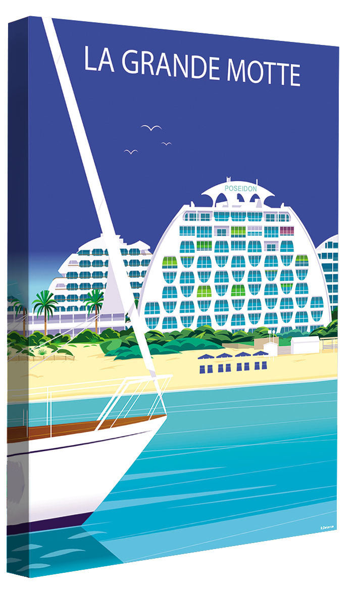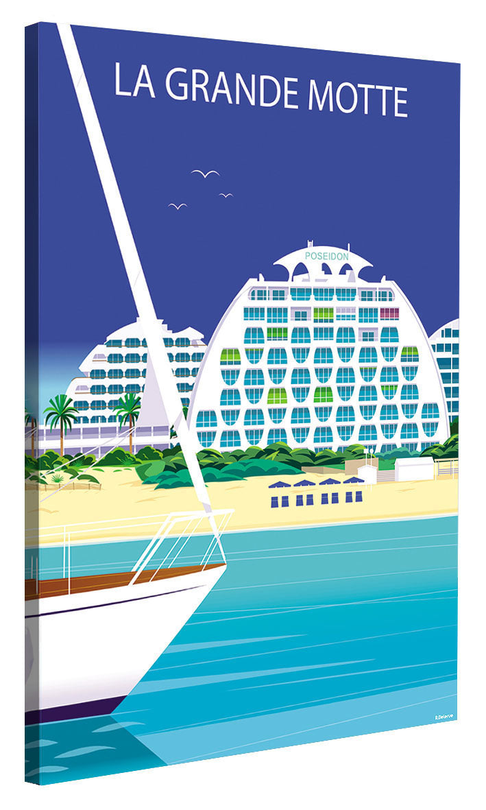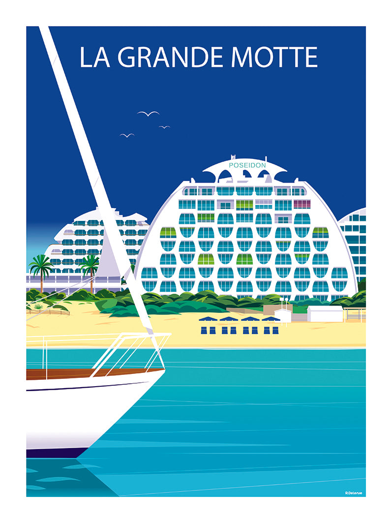 Raphaël Delerue is an illustrator based in Normandy. Trained at the Saint-Luc School in Tournai and ERG in Brussels, he works in advertising, publishing, press, and web. He is known for his retro-style travel posters inspired by the 1950s and 60s. His work combines clean lines, vibrant colors, and regional French landscapes. He also collaborates with publishers such as Hachette and Ouest-France.