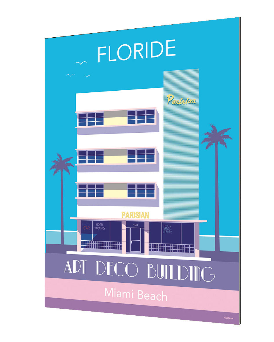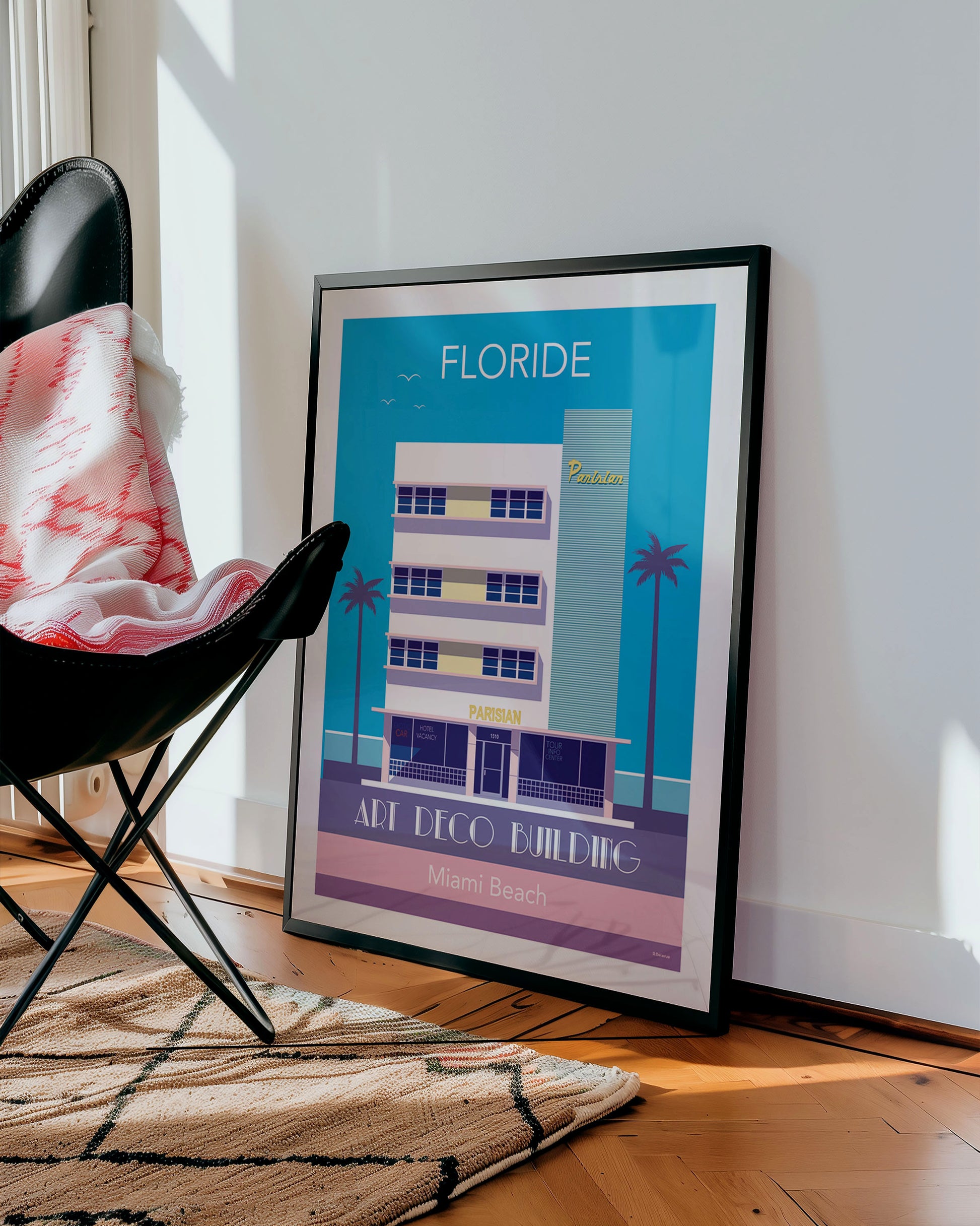 Raphaël Delerue is an illustrator based in Normandy. Trained at the Saint-Luc School in Tournai and ERG in Brussels, he works in advertising, publishing, press, and web. He is known for his retro-style travel posters inspired by the 1950s and 60s. His work combines clean lines, vibrant colors, and regional French landscapes. He also collaborates with publishers such as Hachette and Ouest-France.