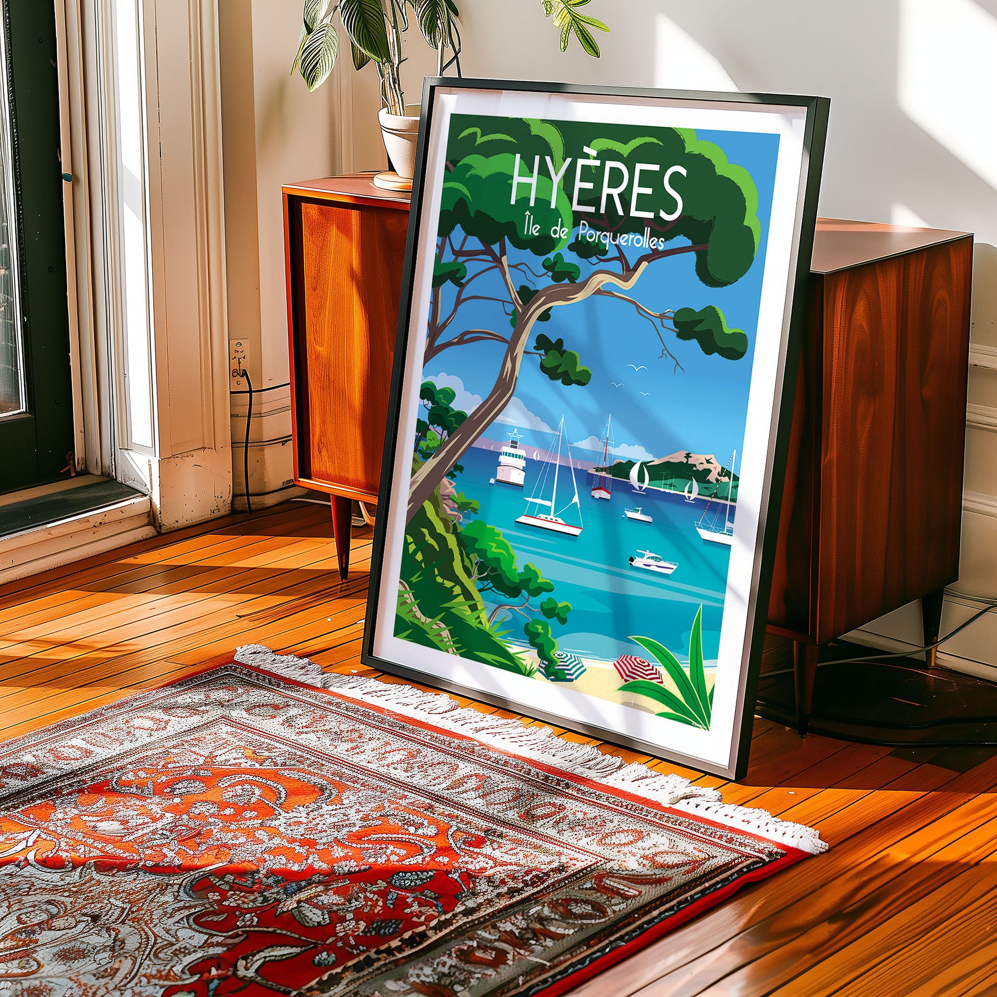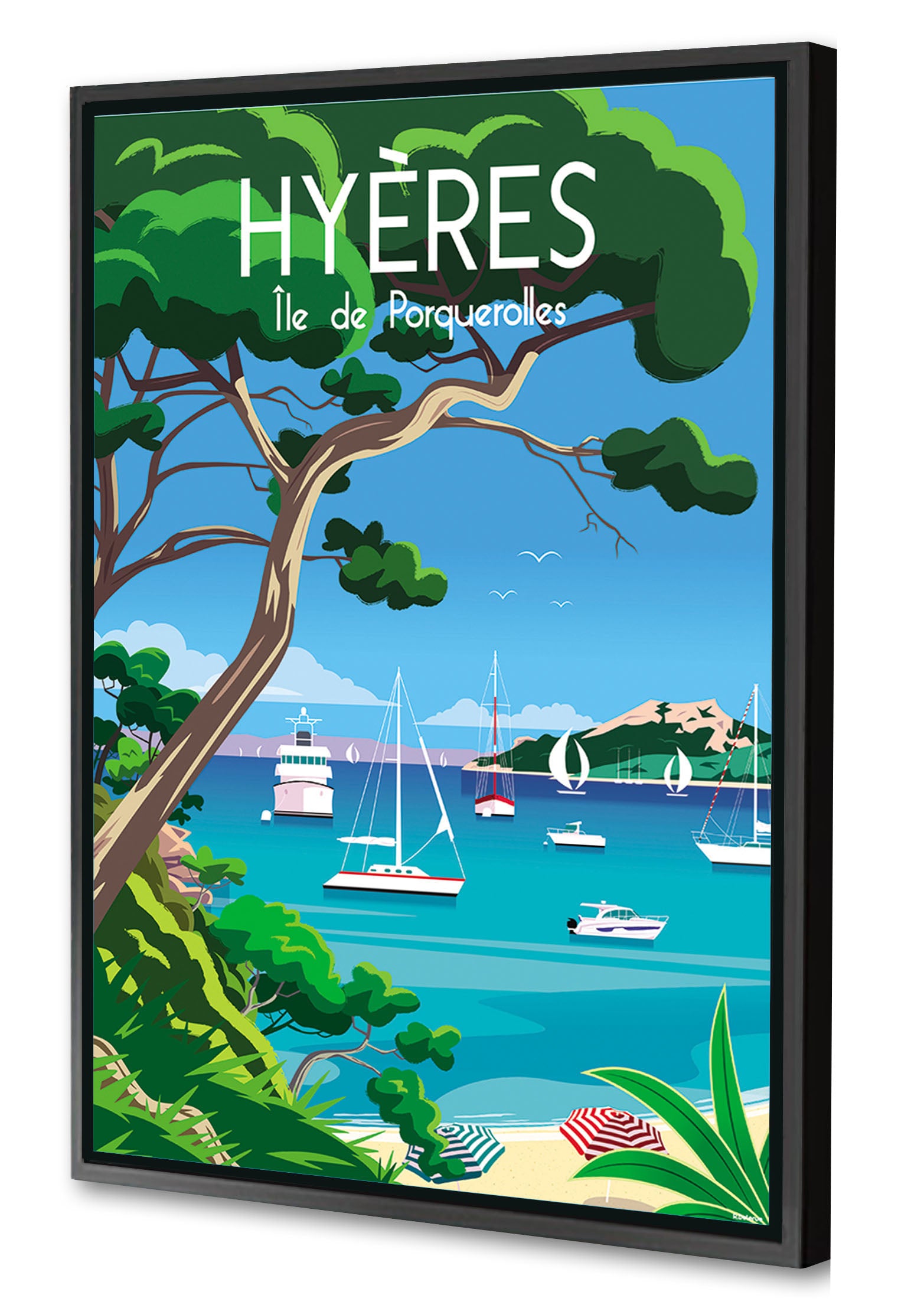 Raphaël Delerue is an illustrator based in Normandy. Trained at the Saint-Luc School in Tournai and ERG in Brussels, he works in advertising, publishing, press, and web. He is known for his retro-style travel posters inspired by the 1950s and 60s. His work combines clean lines, vibrant colors, and regional French landscapes. He also collaborates with publishers such as Hachette and Ouest-France.