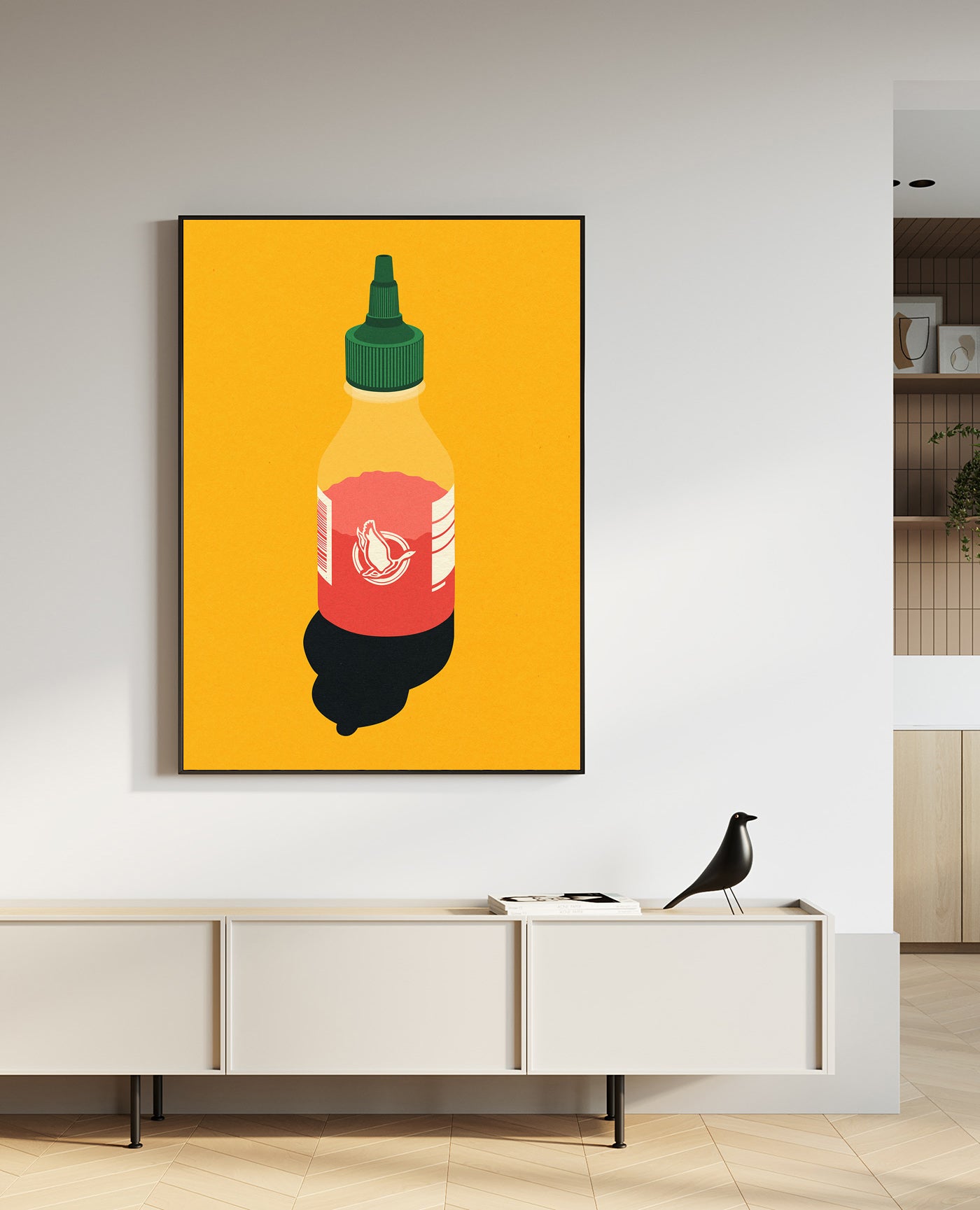 Printed on canvas with 20 mm wooden frame and framed with 37 mm depth black solid wood Box Frame, satin finish (details).