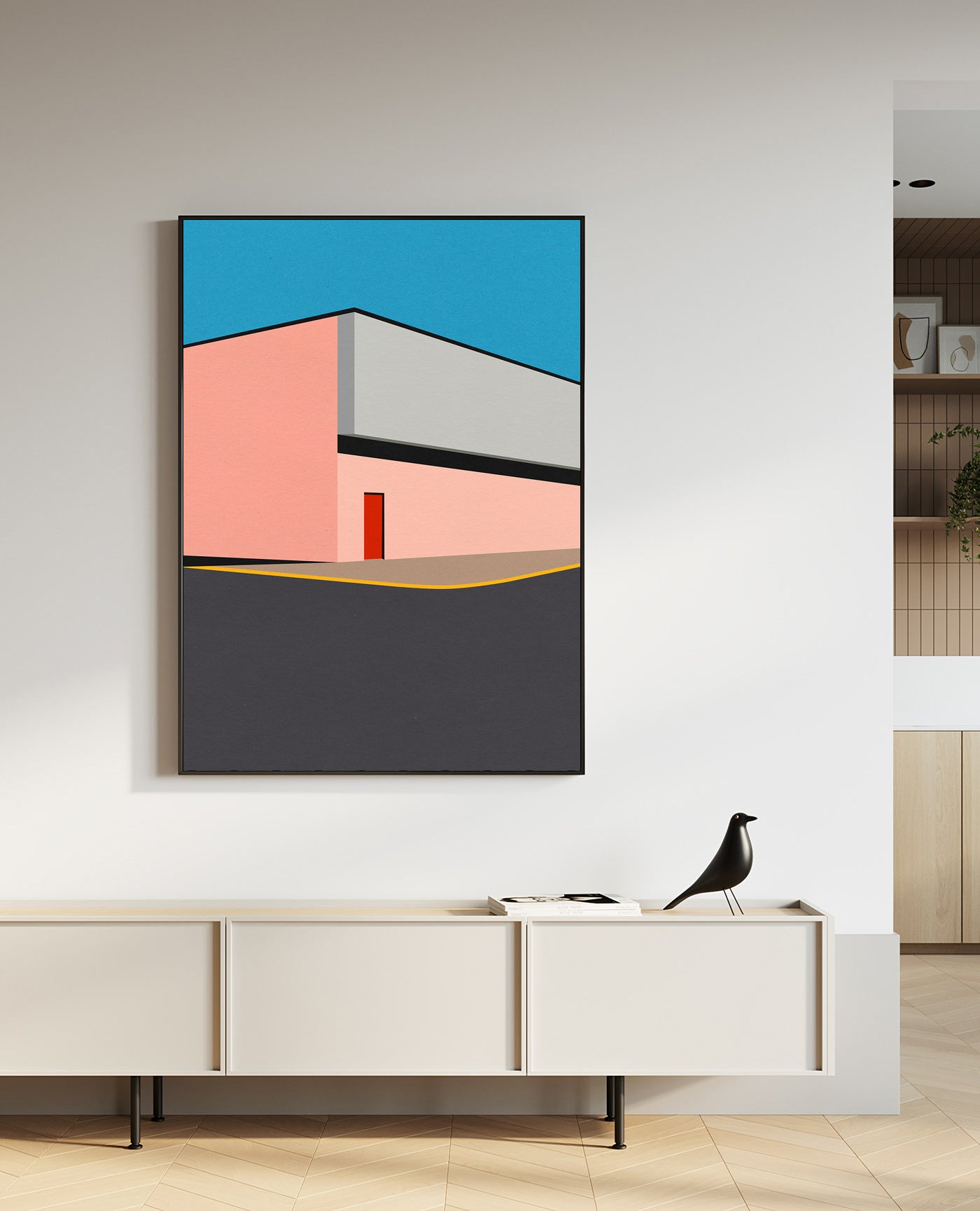 German artist Rosi Feist studied Media Art & Design at the Bauhaus University Weimar. Most of his projects were developed under the guidance of Professor Christine Hill, a New York/Berlin artist, at the Chair of Media, Trend & Public Appearance. Many of his motifs are inspired by photographs taken by his wife during their trips to the USA. These photos often feature scenes from abandoned motels, desert cacti, secluded service stations, and everyday objects that are brought into the spotlight, showcasing the beauty in the ordinary and forgotten. Rosi Feist has a deep affection for the trivial; he finds inspiration in the simplest things, like a garden chair or a rubbish bin. His artistic approach focuses on reducing his subjects to simple areas, often using beautiful pastel colors combined in different layers, allowing him to transform the mundane into visually captivating works of art.