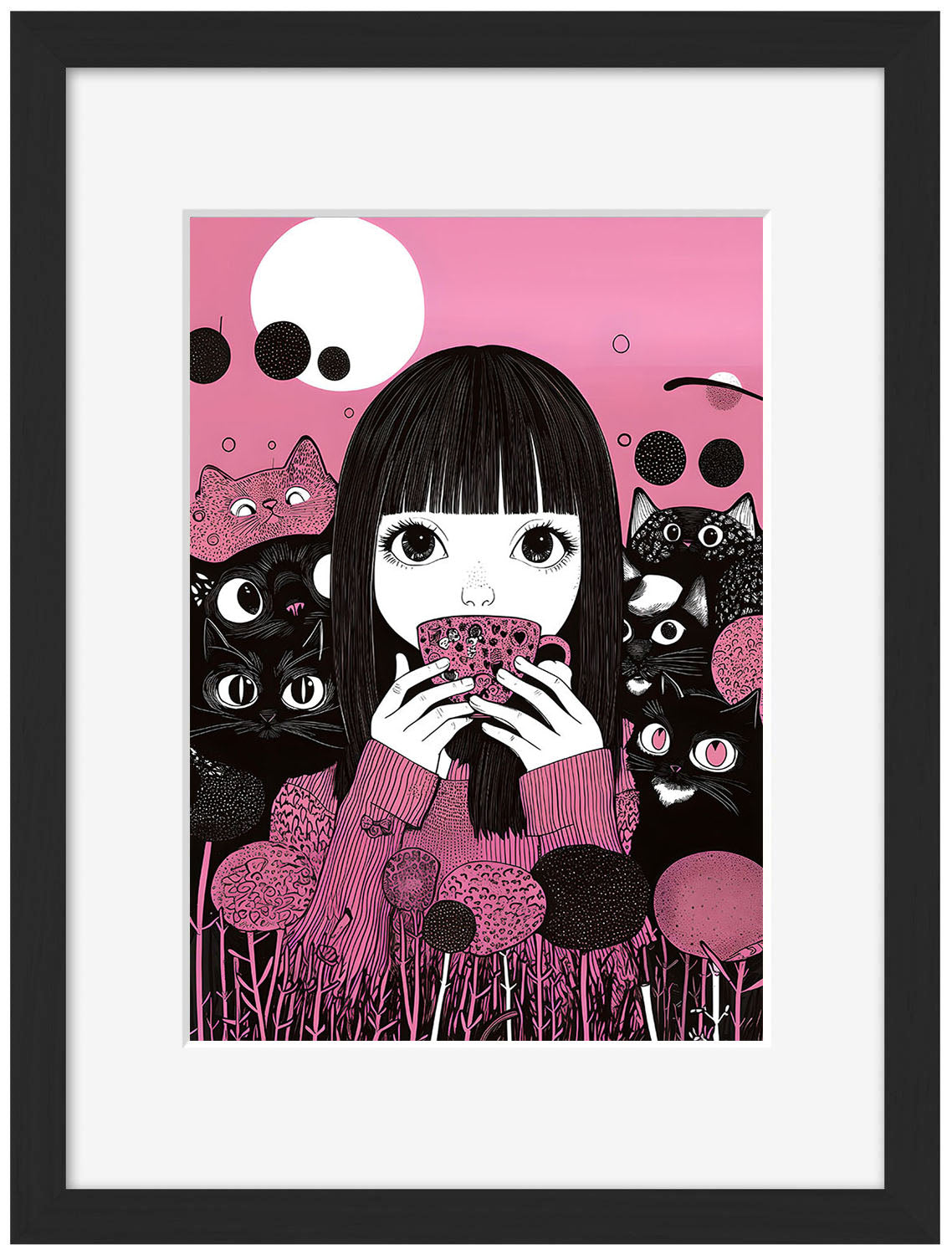Fine Art print 250g with wooden black frame, acrylic glass and passe partout, size of the frame 40 x 50 cm and 50 x 70 cm (details).