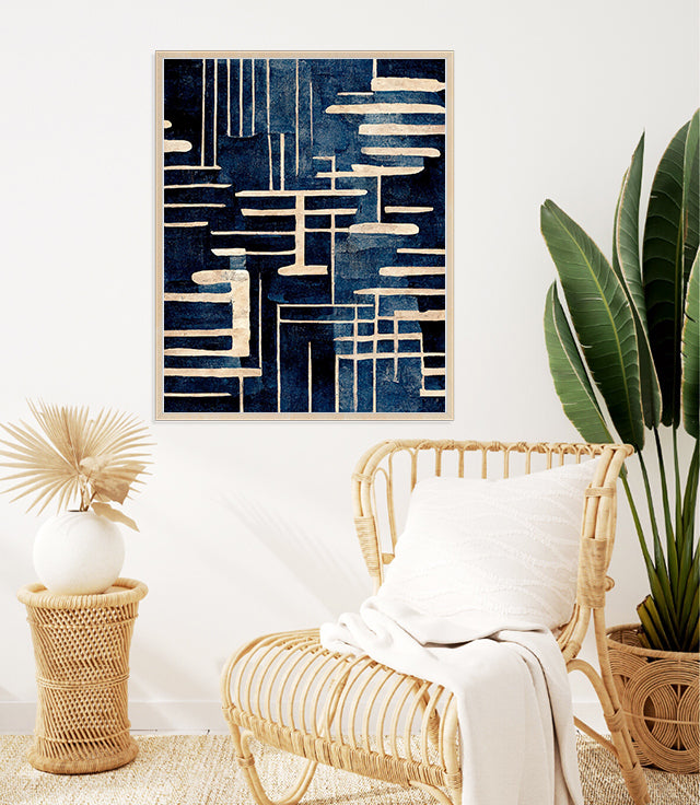 Printed on canvas with 20 mm wooden frame and framed with 37 mm depth black solid wood Box Frame, satin finish (details).